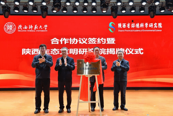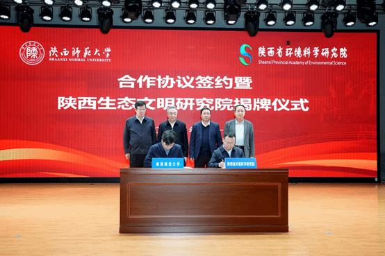 与陕西省环境科学研究院签署合作协议,并举行陕西生态文明研究院揭牌仪式。中国工程院院士冯起,陕西省生态环境厅纪检监察组组长刘志生,陕西省环境科学研究院院长魏新军,校党委书记李晓兵,校长游旭群,副校长董治宝、陈新兵,校长助理袁一芳出席大会。会议由董治宝主持。