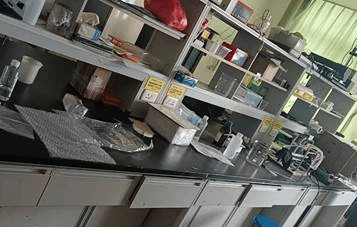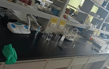 1.1603 实验台物品摆放杂乱;没有及时清理固体废弃物。