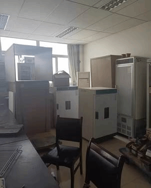 2.1605 实验内物品摆放杂乱,实验室纸箱过多。