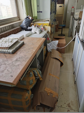 2)通风橱内放置物品过多,挡风玻璃没有拉下(杂物已清理,通风橱挡风玻璃已经拉下);