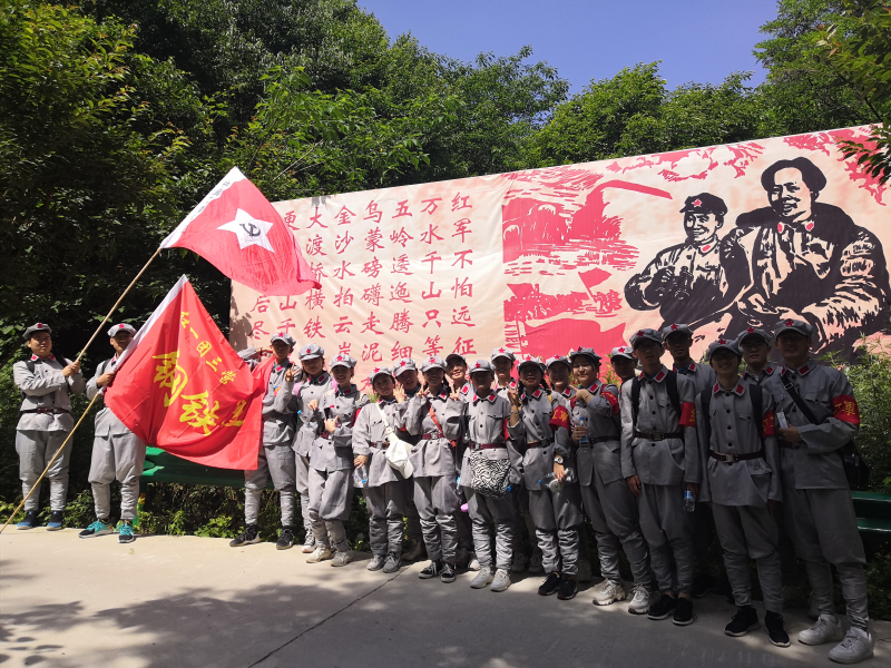 活动伊始,同学们在教练的带领下,按照分组在规定时间内确定了团队的队名、队旗、口号和队歌。蜿蜒山路上,师生们重温红军生活,在教练指导下,以“保证安全”为首要原则,同学们依次有序地完成了“2.5公里徒步”“穿越封锁线”“高空挑战项目”“飞夺泸定桥’”等团队项目,这些训练项目合作性强、趣味性高,使队员们在“体验式学习”过程中塑造团队意识,大家凝聚奋斗激情,磨炼意志品质,积极参与、密切配合、齐心协力,最终都顺利完成了挑战任务,使每个队员深刻理解了“拼搏、团结、努力”的含义,加深了对于“团队”“队友”的认识与理解。