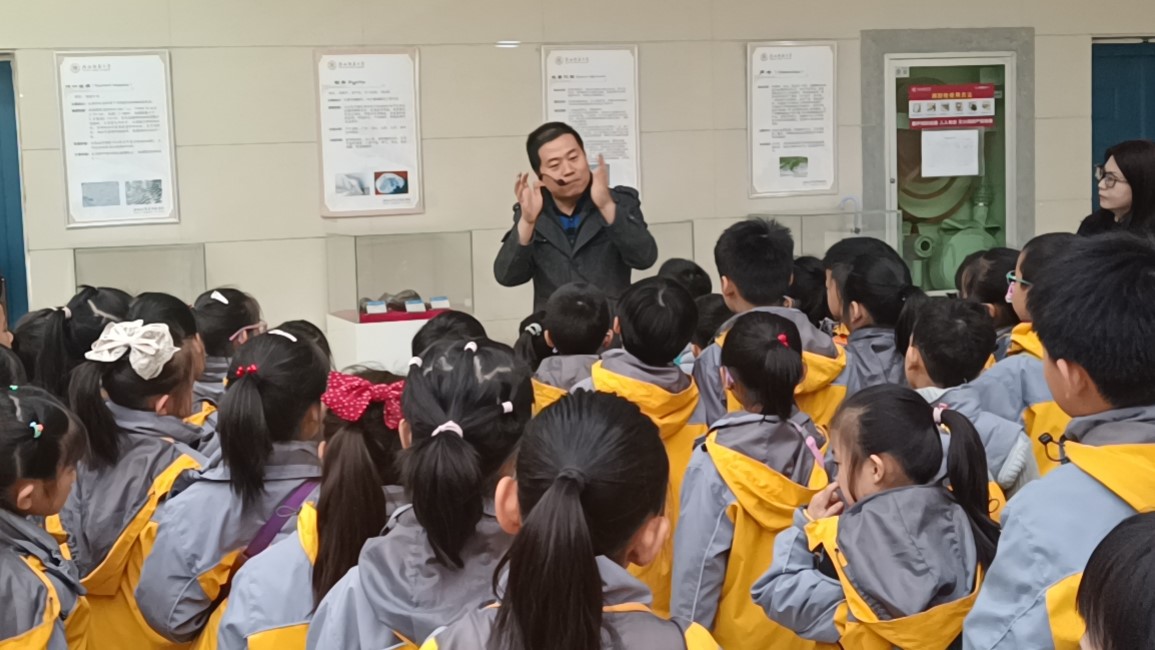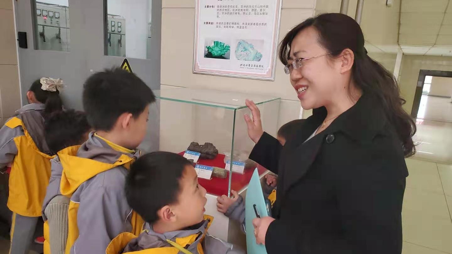为了贯彻“弘扬科学精神,普及科学知识,传播科学思想和科学方法,提高全民科学素质”精神,配合学校科协“科技之春”活动月,2021年3月9日上午,财神捕鱼实验中心接待了师大附小师生一行。师大附小大队辅导员陈倩、科技组组长田阳阳等7名老师带领附小一年级3个班126名学生到财神捕鱼实验中心参观矿物矿石标本及导游模拟实验室。