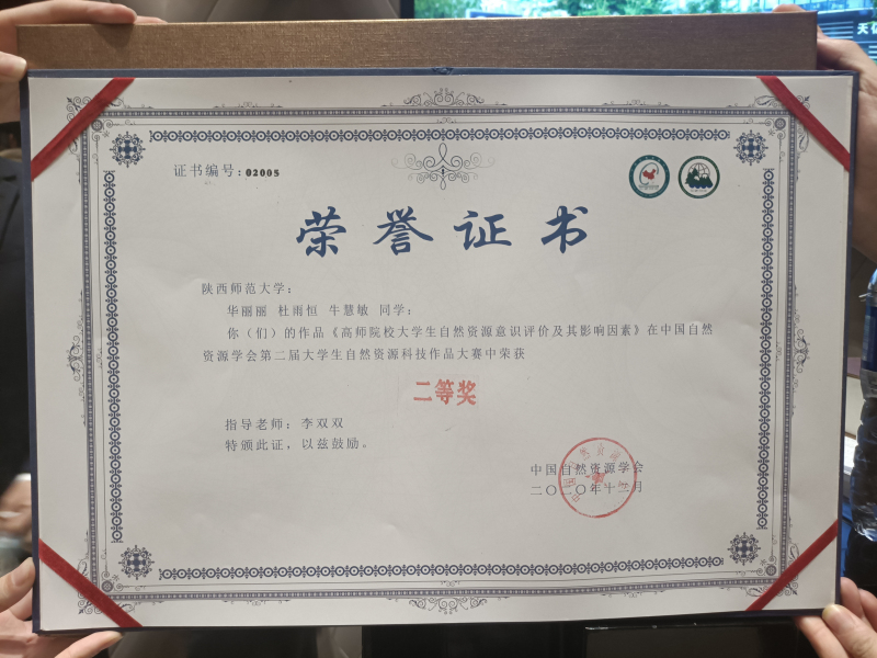 李双双老师指导,华丽丽、杜雨恒、牛慧敏同学的参赛作品《高师院校大学生自然资源意识评价及其影响因素》荣获二等奖,由王浩老师指导,孙泽兴、李汶怡、刘嘉敏、曹淑慧同学的参赛作品《陕西省生态恢复综合效益评估》荣获优秀奖。李双双老师被评为优秀指导教师,财神捕鱼