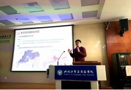 首先,李晶副院长对彭建研究员的到来表示欢迎,并向在座的师生简要介绍了彭老师的主要研究方向和科研成果。随后,彭建研究员以“生态系统服务地理学”为题做了精彩的报告。彭老师从生态系统服务地理学学科背景、学科内涵、近今进展、热点方向四个方面介绍了生态系统服务地理科学。通过生态系统服务权衡、生态系统服务供需、生态系统服务归因、生态系统服务付费和生态系统服务保育五个方面展开,为我们展示了近今进展。最后,彭老师提出了今后生态系统服务地理学研究展望和热点方向:生态系统服务流与生态系统负服务方向研究,令我们开拓思绪、收获颇丰。