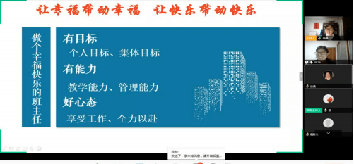 在与师生的线上交流中,孙伟清老师分享了自己的亲身经历,通过讲故事的方式让大家体会到做个幸福快乐班主任的意义。她强调,做一名优秀的班主任,首先需要的是专业教学能力,要学会从课堂中实践,在下课后反思,在课余时交流,不断提升自己的教学技能,让学生能够通过课堂学习到知识,通过老师感受到知识的魅力。做一名优秀的班主任还需要掌握管理能力,这种管理说到底就是了解学生、走进学生和学生做朋友的能力。要学会在生活中和同学们打好交道,运用沟通、交流等各种方式走近学生,依靠真诚的态度和真实的情感了解学生,利用丰富的理论知识和生活经验帮助学生。做一名优秀的班主任还需要有一个良好的心态,学会享受这份工作的意义。好的工作态度和生活态度不但会让自己更好地成为一名幸福快乐的班主任,也会影响到同学们,让他们在一个充满尊重和爱意的环境中健康成长。