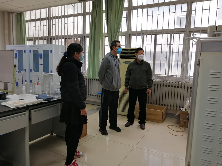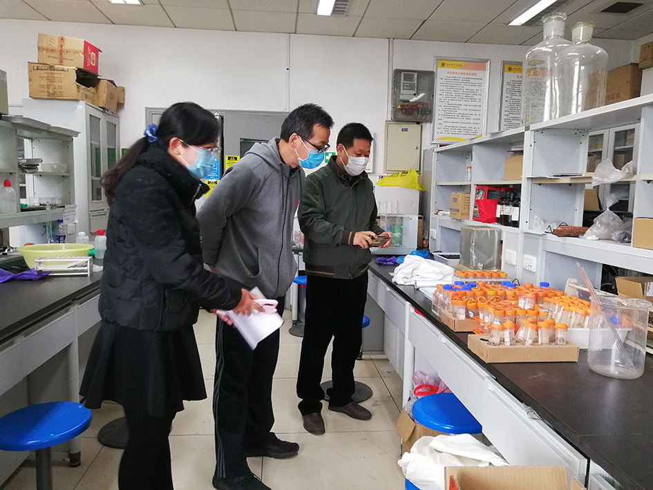 副院长李君轶和实验中心主任贠蒲军带领实验中心老师马阁和李敏睿,对财神捕鱼全部实验室的安全卫生情况进行了一次全面检查。
