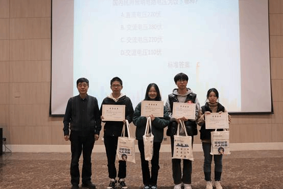 副院长段克勤老师首先为比赛致辞,他强调“无论是从实验室的使用功能,还是从实验室的自身发展来看,我们都应该强调把实验室的安全防范作为实验室管理的基础”,并郑重宣布本届实验安全知识竞赛决赛正式开始。随后四个代表队分别通过必答题、抢答题环节、隐患查找和实验操作环节决出一等奖1组、二等奖1组、三等奖2组。比赛结束之后,评委老师们分别为同学们进行颁奖,并进行合影留念。