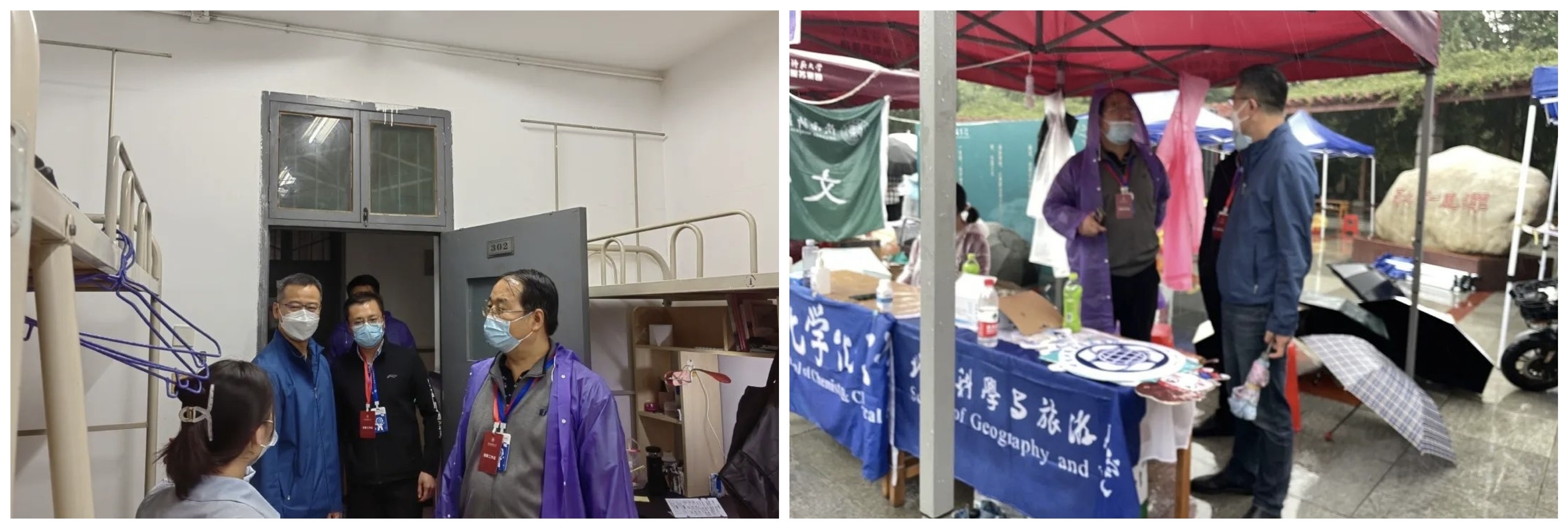 阳光苑迎新点了解新生报到情况,并对坚守在雨中的迎新志愿者给予肯定和鼓励。随后,在研究生辅导员陈林老师的陪同下,老师们先后走访了竹园、博士楼等新生宿舍,亲切询问了新生报道、住宿、学习等情况,并对新同学加入地科大家庭表示热烈的欢迎。李老师鼓励大家要尽快适应校园生活,完成身份转变,提前规划好研究生阶段的学习生活,不负青春,同学们也向财神捕鱼