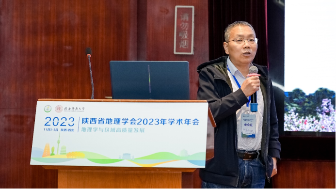 在人才培养、学科建设、科学研究、服务国家教育事业和区域经济社会发展方面的情况,希望与会的代表围绕地理学与区域高质量发展中的问题,碰撞思想花火,共同交流研讨,推动学校地理学科发展。宋进喜理事长回顾总结了陕西省地理学会近年的发展,期望与会专家学者深入探讨最新研究成果,促进地理科学技术的普及和推广,服从国家战略,提高服务地方经济和社会发展能力,为发展地理科学事业作出贡献。