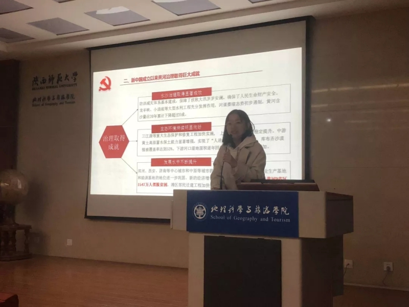 刘乐同学通过精彩的讲解以及互动探讨如何做到不忘初心牢记使命。首先以习近平总书记在黄河流域生态保护和高质量发展座谈会上的讲话为例,总书记在讲话中强调,保护黄河是千年大计,黄河流域是打赢脱贫攻坚战的重要区域,自新中国成立以来,我国在水沙治理、生态环境和发展水平等方面取得了巨大成就,黄河的重要性不可忽视。之后,全体党员及积极分子观看了视频《夏明翰就义诗》,该视频让我们了解了夏明翰同志的生平及贡献,也让我们深刻学习了夏明翰同志不畏牺牲、不忘初心、甘于奉献的精神。新时代我们要继续不忘初心,砥砺前行,牢记自身使命,以更大的热情投入到当前的工作和生活中。随后党员及入党积极分子同学先后发言。