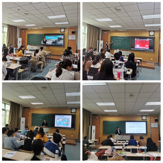 模拟授课过程中,有的选手结合古语名句,从“一场秋雨一场寒”引入冷锋和天气的探讨;有的选手以身边的现象,如汶川地震、壶口瀑布等入手,讲解板块运动和河流地貌;有的选手则以动画、短视频等趣味展示导入,展开大气受热过程的讲解……参赛选手们还在课堂中使用不同颜色的纸板等辅助教具,使课堂更加直观形象;也融入了互动环节,提高学生的积极性和参与度。每位选手授课结束,评委老师们都给出了针对性的意见和建议。他们认为,各位参赛选手已经初步具备了成为优秀教师的基本条件,但地理教学能力上依然尚有欠缺,需要大家苦练教师技能,夯实理论基础,发挥地理魅力。
