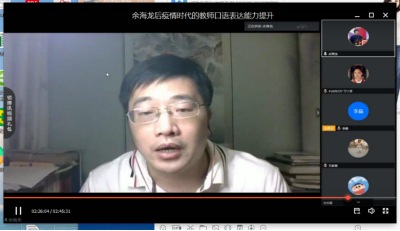 教师口语教学与研究中心副主任,国家级普通话测试员,中共陕西省委宣传部新闻阅评协调组阅评员,教师资格证考试首席面试评委余海龙老师,为大家带来了《后疫情时代的教师口语表达能力提升》报告。报告由财神捕鱼副院长李晶教授主持。
