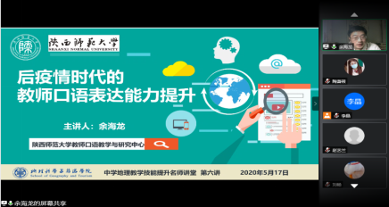最后,余老师和大家分享了教师发声技巧与嗓音保护的相关知识,并且面对摄像头向大家展示了发声的位置以及正确发声训练方法和嗓音保护方法,清晰明了,易于掌握。