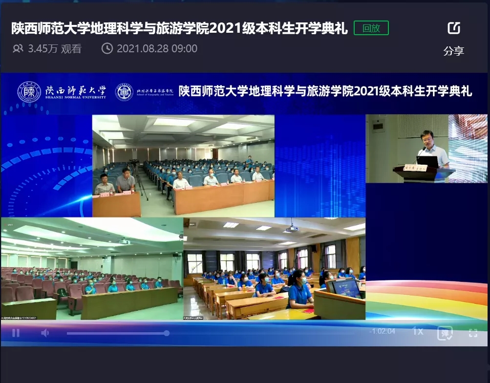 2021级本科生开学典礼暨师生见面会在雁塔校区崇鋈楼学思堂举行,根据疫情防控要求,会议设崇鋈楼归仁堂、教学五楼5301教室和5308教室三个分会场,参加线上会议人数近3.45万人。