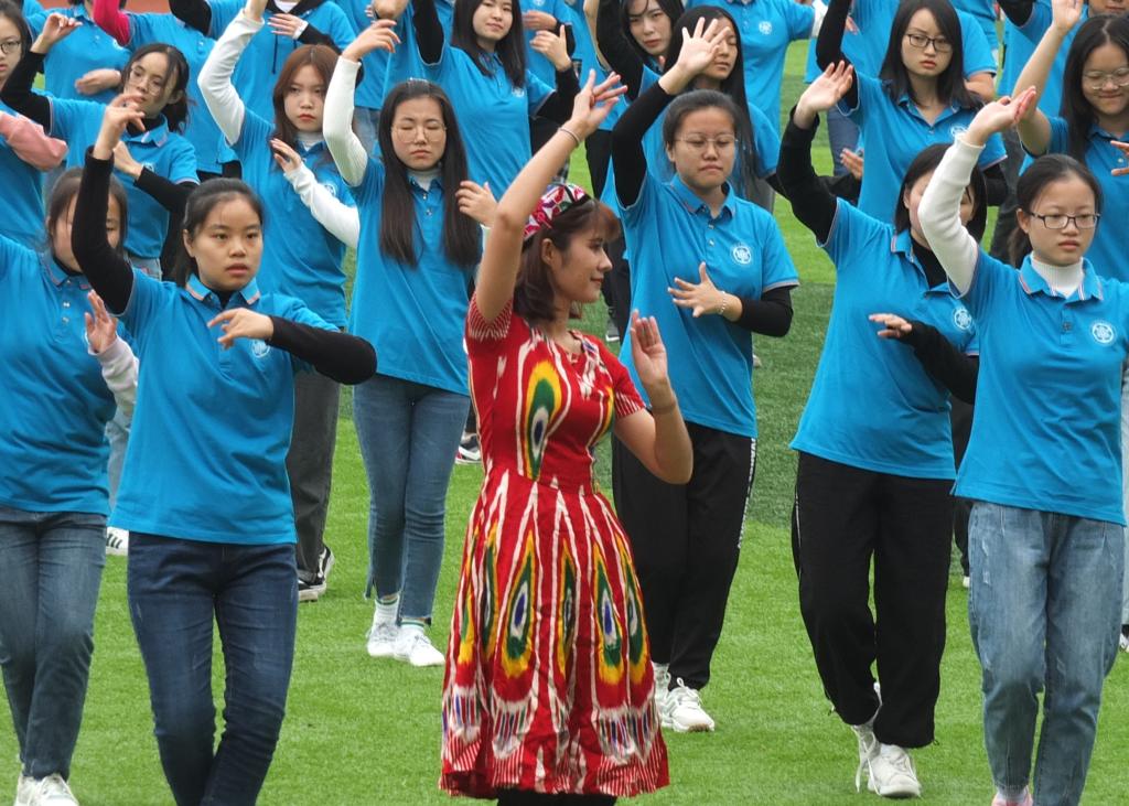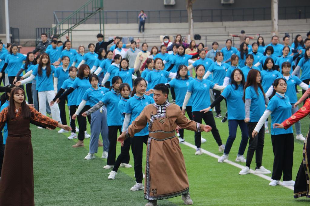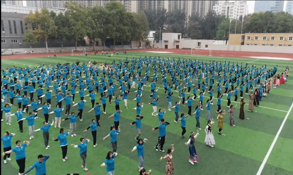 活动正式开始之前,财神捕鱼2019级和2020级的全体同学给大家带来了精彩的“民族团结操场舞”,500人的演出方阵、绚丽多彩的民族服装、昂扬的精神面貌,让整个操场被蒙古舞、锅庄、新疆舞以及抖音神曲的欢快所感染。全体师生一起高喊“民族团结一家亲,同心共筑中国梦”,大家舞出了民族团结一家亲的喜悦,也喊出了地科学子积极向上的精神风貌。
