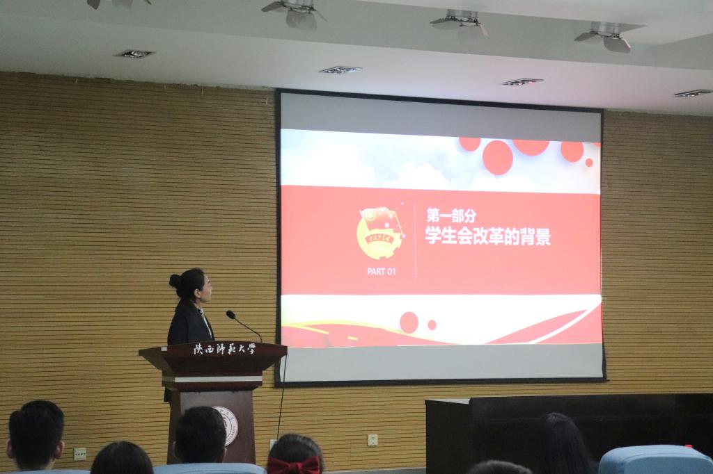 成立大会之后,团委书记王蓓蓓老师给大家带来了题为《坚持从严治“会”,回归服务宗旨》的精彩团课。她从学生会改革的背景、学生会的职能定位、学生会的“十条回归”以及学生会新要求、新作为等四个方面,通过经典案例,结合财神捕鱼