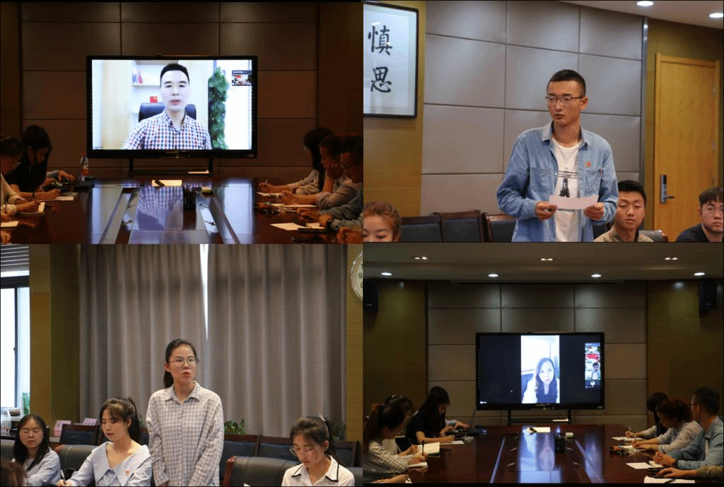 学生党员王新蓓根据疫情期间医患关系的转变与周医生进行交流探讨;哈延庆同学就恪守岗位的信念来源向卢君进行提问;杨超同学以习近平总书记来陕考察提出的“六稳”、“六保”为切入点,围绕学校为复工复学开创的线上打卡、日检日报、错峰就餐等工作进行讨论交流。