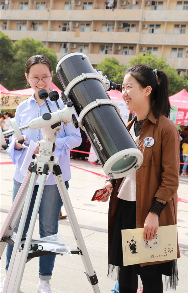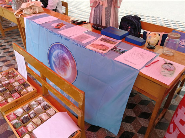 本次“百团大战”,地理学社准备了精彩节目——陕西美食说唱,既富有感染力又具有地理特色;问天社指导参与者用望远镜观测太阳,极富特色的是,8个社团成员表演了天文科普剧,为大家科普了望远镜组装和木星运行的知识,社长总结并邀请大家积极加入问天社;东方志愿者协会创新的一些趣味小游戏,例如,做模仿和真假难辨,这些看似简单的小游戏,吸引了多数同学呼朋唤友地来参加;旅游学社以“世界那么大,我想去看看”为主题,同时通过地理拼图,猜地名游戏让同学们在其中领略各地风情,游戏胜利者还可得到大礼包。环保DIY俱乐部也需要增添新的力量,举办了社团博览暨纳新活动