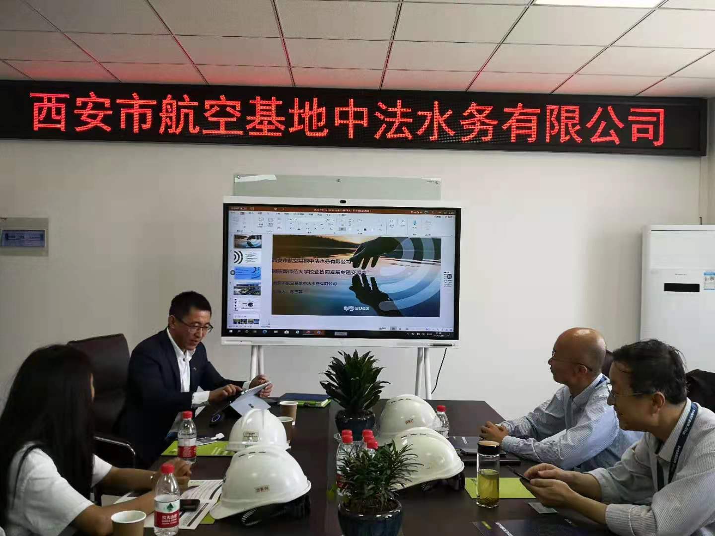 参观结束后,老师和同学与基地负责人进行座谈交流,进一步了解了西安中法水务的研究方向及工程内容,李剑超教授也做了关于《化学机器视觉&智慧水务》的专题报告,双方就专业前沿技术进行了热烈的探讨。座谈期间,表处基地及污水处理厂领导对于环境科学系师生的到来表示了诚挚的欢迎,大家就实习基地建设、高校与企业共享实验室及校企产学研项目合作等开展了有益的交流,希望共同构建更多、形式更为丰富的组织活动以推动校企双方的共同进步。