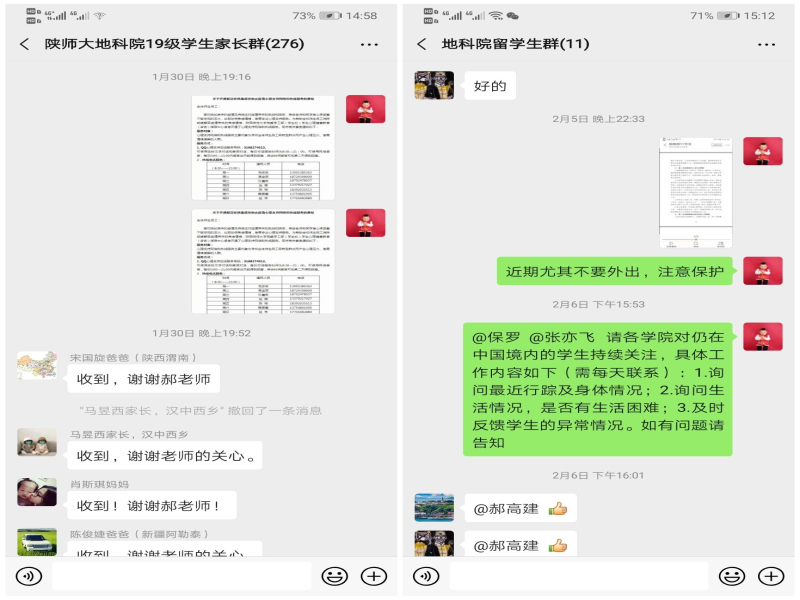 网站、家长微信群、QQ群、“我在校园”学生管理系统、“逗逗地科”公众号、与学生家长电话沟通等方式,设立“战疫情”财神捕鱼