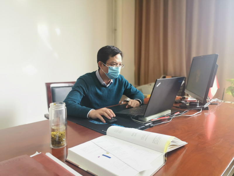 通过视频会议研究部署疫情防控期间在线教学工作。财神捕鱼